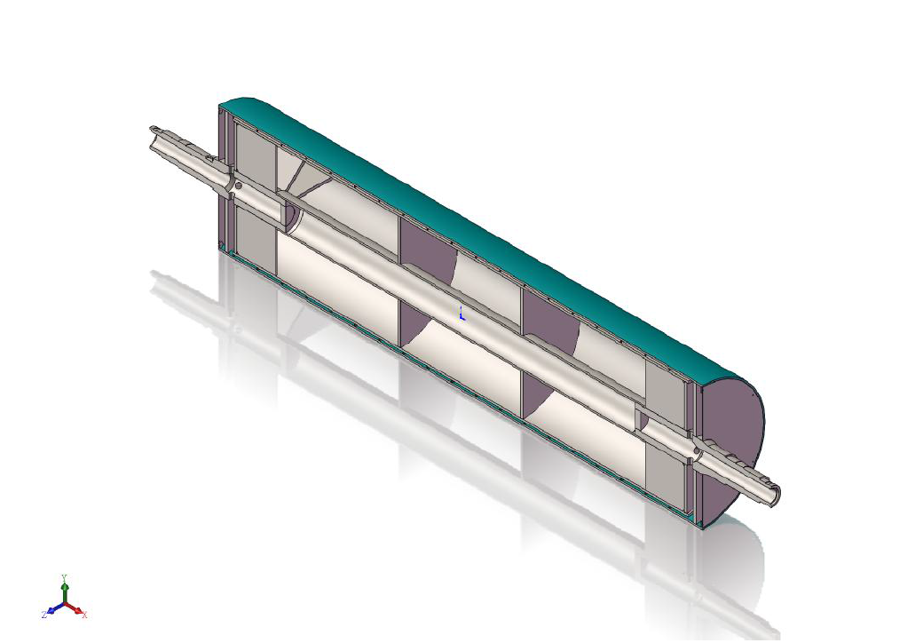 雙流道大直徑流延主冷輥,包括輥筒、進(jìn)水導(dǎo)流器、出水導(dǎo)流器,進(jìn)水軸頭管和出水軸頭管,輥筒包括外筒、與外筒同軸設(shè)置的內(nèi)筒和在外筒、內(nèi)筒之間設(shè)置的多個(gè)螺旋導(dǎo)流片,相鄰兩個(gè)螺旋導(dǎo)流片構(gòu)成一個(gè)螺旋導(dǎo)流槽,進(jìn)水導(dǎo)流器、出水導(dǎo)流器分別固定連接在輥筒的兩端,進(jìn)水軸頭管和出水軸頭管分別安裝在進(jìn)水導(dǎo)流器、出水導(dǎo)流器上。大直徑流延主冷輥,結(jié)構(gòu)簡(jiǎn)單,由于設(shè)置了進(jìn)水導(dǎo)流器和出水導(dǎo)流器,可有效降低主冷輥內(nèi)部的流動(dòng)阻力,能夠使得流入輥筒內(nèi)的冷卻水量更加均勻,提高主冷輥的送水能力,提高主冷輥冷卻效率,有效提高輥筒表面的溫度均勻性,節(jié)約能耗。